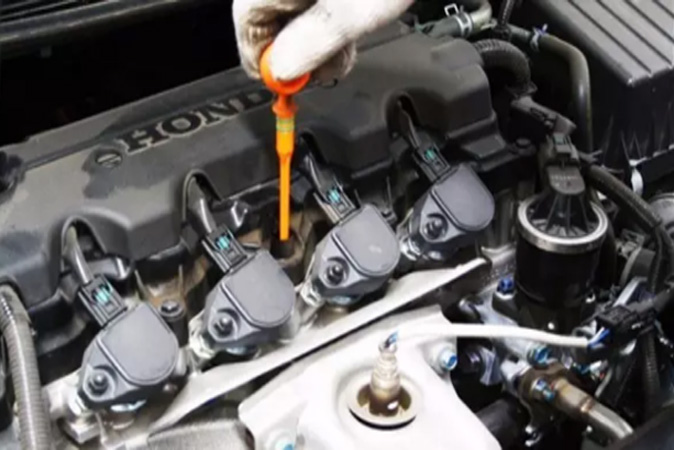 2、关闭发动机等候10-15分钟左右,让机油会全部回流至油底壳后查看。如果是经常需要查看话,可以在早晨启动车辆之前查看,此时的机油油面高度也是准确的。检查机油尺时,车的四个轮子停在同个一水平高度上。一旦车身有倾斜,油底壳内的机油液面就会改变,测量结果不准。